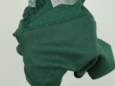 Bluzka damska w kolorze butelkowej zieleni z efektownymi rękawami - Fason: dopasowana bluzka z wiązaniem pod szyją (apaszka/krawat) i stójką - Materiał korpusu: 95% poliester, 5% elastan (metka: “...