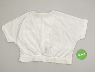Biała bluzka damska VIZZY Collection - Rozmiar z metki: 54 - Materiał: 100% bawełna (cienka, przewiewna tkanina) - Krój: prosty, lekko luźny, krótszy tył z małym rozporkiem po bokach - Rękaw: krót...