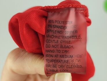 - Pielęgnacja (z metki): prać w pralce w zimnej wodzie, delikatny cykl; nie wybielać; suszyć na wieszaku; prasować w średniej temperaturze; można czyścić chemicznie; delikatne suszenie w suszarce