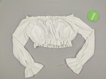 Biała bluzka hiszpanka MyOwn, rozmiar S. - Dekolt typu „off shoulder” z elastyczną gumką wokół ramion - Długi rękaw z marszczeniami i elastycznymi mankietami - Ozdobne perełki na rękawach i wzdłuż...