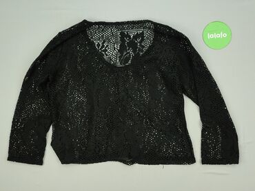 Bluzka damska, czarna, z połyskiem - Krój: kopertowy przód zapinany na rząd guzików, dekolt w kształcie litery V, krótkie rękawy, lekkie rozkloszowanie w talii, niewielkie rozcięcia po bokach. - M...