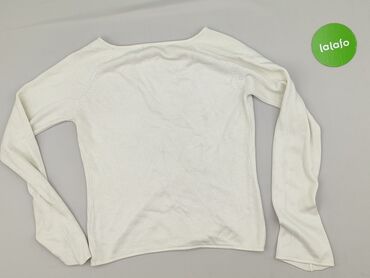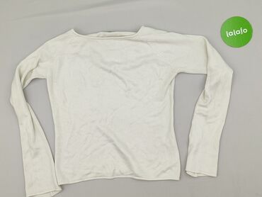Ażurowa bluzka/sweter damski w kolorze białym. - Krój: luźny, z opadającą linią ramion - Dekolt: łódkowy - Rękawy: 3/4 - Materiał: dzianina ażurowa z dużymi, owalnymi wycięciami; miękka, elastyczn...