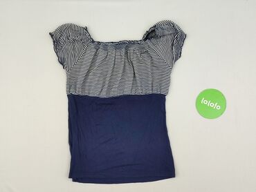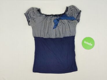 Bluzka damska w paski, rozmiar S - Krój: dopasowany, dekolt w serek - Rękaw: 3/4 - Wzór: poziome paski granatowo-białe - Dzianina prążkowana (elastyczna, miękka) - Skład materiału z metki: poliest...