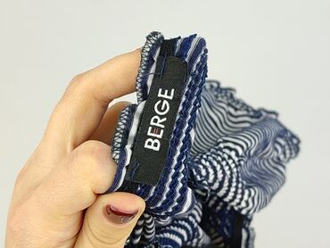 Bluzka damska BERGE, granatowa - Fason: elastyczna bluzka z marszczeniami (shirring) z przodu i u dołu - Dekolt: szeroki, z szerokim karczkiem na gumce – można nosić klasycznie lub opuszczoną na r...Stan:
