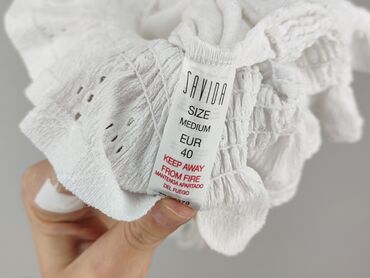 Różowa bluzka damska SAVIDA, rozmiar XS (EU 36). - Fason: lekko dopasowany, z krótkimi, bufowanymi rękawami. - Dekolt: okrągły. - Tkanina: strukturalna, „bąbelkowa” faktura dająca trójwymiarowy ef...