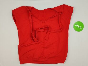 Czerwona bluzka damska J by Q - Fason: dopasowany, z krótkim rękawkiem typu cap - Dekolt: marszczony na gumce, z pęknięciem i troczkiem do wiązania z tyłu - Długość: do bioder - Materiał: elastycz...