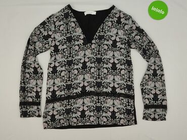 Bluzka damska Promod - Kolor: granatowy z delikatnym, drobnym nadrukiem w jaśniejszym odcieniu - Krój: lekko luźny, zaokrąglony dół, tył nieco dłuższy - Dekolt: w kształcie litery V z krótką listw...