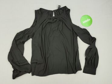 Czarna bluzka damska marki Forever 21 z długim rękawem i nitami ozdobnymi na ramionach. Bluzka zapinana jest z przodu na guziki. Rękawy zakończone są mankietami z gumką, co nadaje im bufiastego ksz...