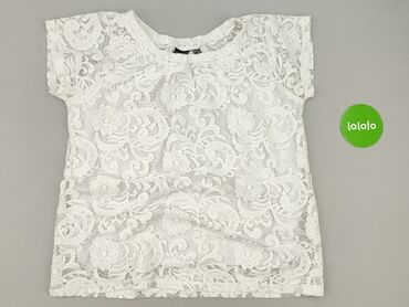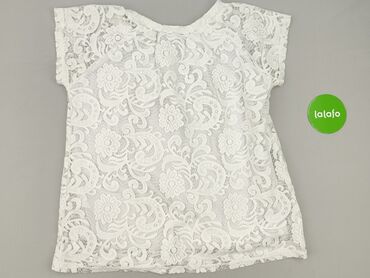 Biała bluzka damska z koronkową aplikacją - Krój: luźny, z krótkim rękawem - Dekolt: okrągły - Materiał: miękka dzianina od spodu + ażurowa, koronkowa warstwa wierzchnia - Detale: dekoracyjny, gęs...