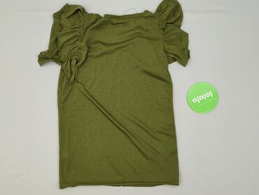 Bluzka damska boho z ażurowymi wstawkami - Kolor: oliwkowa zieleń - Krój: luźny, tunikowy; długość do bioder - Rękawy: krótkie, falbankowe z haftem angielskim - Dekolt: okrągły - Detale: liczne aż...