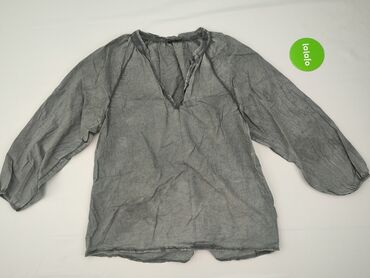 Bluzka damska oversize – jasnoszara - Krój: luźny, z obniżoną linią ramion; krótkie, szerokie rękawy z ozdobnymi napami/przyciskami na ramionach. - Dekolt: okrągły. - Ozdoba: aplikacja okrągła z l...