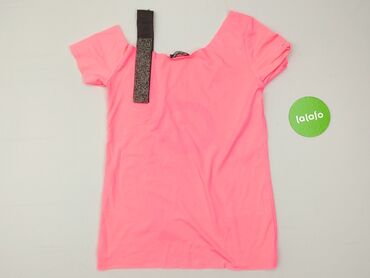 Bluzka damska MOON S/M - Krój: luźny, lekko wydłużony tył (tunika), krótkie rękawki - Dekolt: półokrągły z ozdobnym wycięciem na plecach i cienkim troczkiem do zawiązania - Wzór: duże kwiaty w odc...