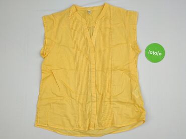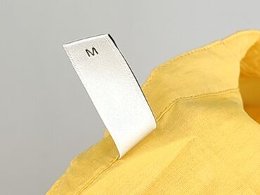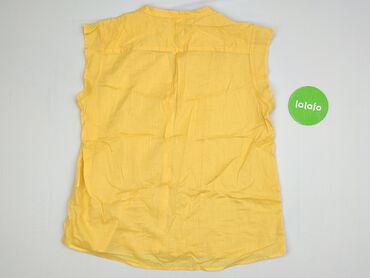 Bluzka damska z lekkiego, zwiewnego materiału w pastelowym, jasnożółtym kolorze. - Krój: luźny, z delikatną zakładką z przodu i dłuższym, zaokrąglonym dołem - Rękawki: krótkie, falbaniaste - Tył: ...