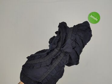 Bluzka damska z warstwowymi falbanami - Kolor: granatowa góra, czarny dół - Krój: luźny, z opuszczoną linią ramion - Dekolt: łagodnie zaokrąglony - Rękawy 3/4 z marszczeniem, zapinane na małe guzi...Stan: