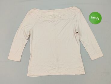 Bluzka damska ORSAY - Rozmiar: XL (EUR XL) - Kolor: pudrowy róż, melanż - Krój: luźniejszy, rękaw 3/4 - Dekolt: łódka z ozdobnymi aplikacjami/taśmami wzdłuż linii ramion - Materiał (metka): 97% wi...Stan: