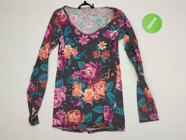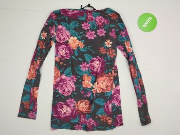 Bluzka damska WOMEN, rozmiar 36. - Fason: dopasowany, z długim rękawem i zaokrąglonym dołem. - Dekolt: okrągły. - Wzór: intensywny kwiatowy print w odcieniach różu, malinowego, żółtego i bieli, z c...