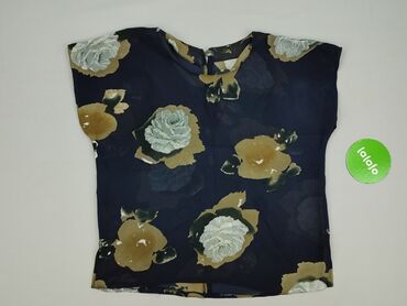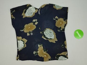 Bluzka damska z krótkim rękawem - Kolor: granatowy - Wzór: kwiatowy (czerwone i jasnoniebieskie motywy roślinne) - Krój: luźny, lekko pudełkowy - Dekolt: w kształcie litery V - Zapięcie: 2 dekorac...Stan: