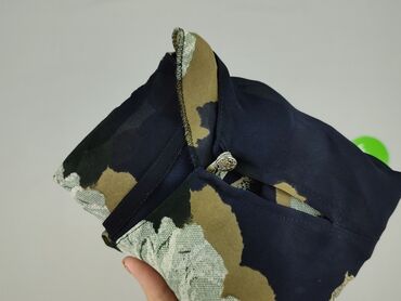 Krótki rękawBluzka damska z krótkim rękawem, w czarno‑granatowym kolorze z dużym, kwiatowym wzorem w odcieniach beżu, oliwki i jasnej mięty. Lekka, półprzezroczysta tkanina o delikatnym, lejącym chwycie. Luźny, prosty krój z opadającym rękawkiem. Okrągły dekolt, z tyłu małe rozcięcie zapinane na ozdobny guziczek pętelką. Dół prosty, po bokach krótkie rozcięcia. Idealna do stylizacji eleganckich i casualowych – świetnie wygląda z jeansami, spódnicą lub pod żakietem.