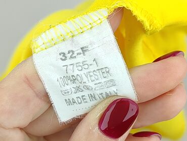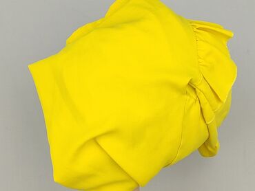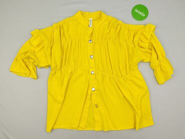 Żółta koszula/bluza damska z krótkim rękawem - Krój: luźny, pudełkowy, z lekko zaokrąglonym dołem (tył nieco dłuższy) - Dekolt: głęboki V - Zapięcie: pojedynczy guzik z przodu - Rękawy: do łokcia ...