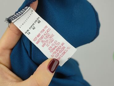 Bluzka damska Atmosphere - Kolor: głęboki niebieski (teal/navy). - Fason: luźny, prosty krój z zaokrąglonym dołem; rozcięcia po bokach. - Rękaw: 3/4, lekko rozszerzany. - Dekolt: okrągły; z tyłu m...