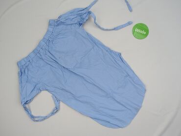 Jasnoniebieska bluzka/tunika oversize z marszczoną stójką i wiązaniem na karku. - Krój: luźny, nietoperzowe rękawy, opuszczone linie ramion - Dekolt: stójka z delikatnym marszczeniem, z tyłu pękni...