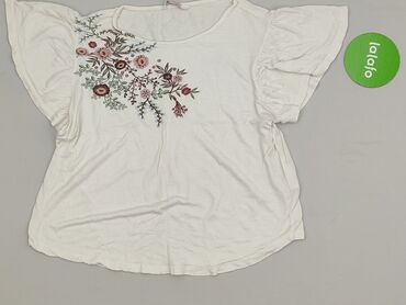 Biała bluzka damska CLOCKHOUSE, rozmiar L. - Materiał: 100% bawełna (metka wewnętrzna) - Krótki rękaw z delikatną falbanką przy krawędzi - Dekolt w serek z listwą guzikową z przodu (na całej długo...