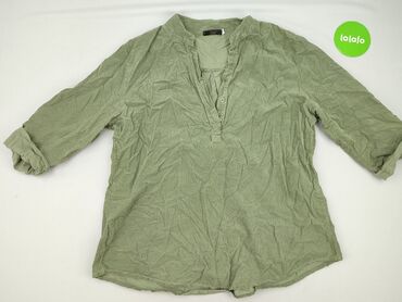 Bluzka damska z długim rękawem, oliwkowa/khaki - Krój: luźny, z zaokrąglonym dołem (dłuższy tył), bez klasycznego kołnierzyka – stójka - Dekolt: V z częściową listwą guzikową (3 guziki) - Rękawy: ...