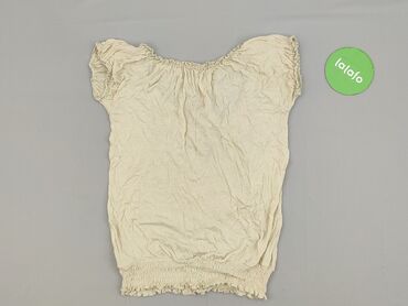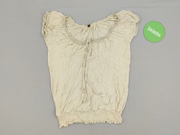 Bluzka damska w kolorze ecru/łamanej bieli. - Fason: prosta, lekko luźna, długość do bioder - Rękawy: krótkie, zdobione delikatnymi falbanami wzdłuż szwu ramion - Dekolt: okrągły - Zapięcie: z tył...Stan: