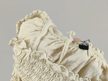 Ażurowa bluzka dzianinowa, ręcznie robiona na drutach w kolorze ecru/śmietankowym. - Krój: prosty, lekko pudełkowy, z krótkimi rękawami typu motylek - Dekolt: półokrągły, wykończony falbankową lam...