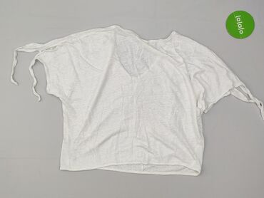 Biała bluzka damska o kroju oversize, zapinana na guziki. - Krój: krótki, szeroki, z opuszczoną linią ramion; rękawy krótkie, luźne - Dekolt: okrągły z rozcięciem przy zapięciu - Zapięcie: listwa ...Stan: