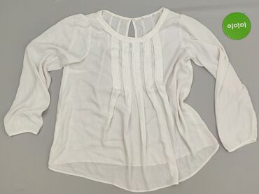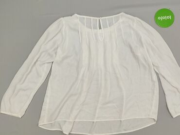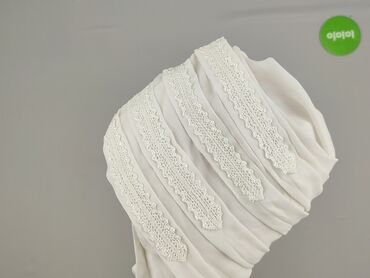 Biała bluzka damska z długim rękawem - Lekka, przewiewna tkanina o delikatnej, pionowej fakturze (miękko układający się materiał). - Ozdobne, poziome wstawki z koronki/ażuru z przodu i na obwodzie...Stan: