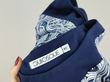 Bluzka damska marki QUIOSQUE w rozmiarze 40, w idealnym stanie. Charakteryzuje się wzorzystym nadrukiem w odcieniach niebieskiego, czerni i bieli, który nadaje jej dynamiczny wygląd. Fason z dekolt...