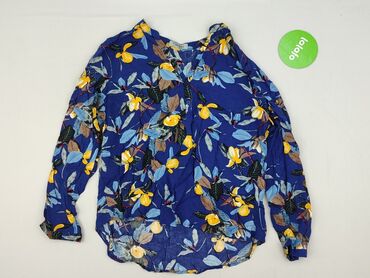 Bluzka damska Reserved - Rozmiar: EU 38 (UK 10) – metka widoczna na zdjęciach - Kolor: granatowe tło - Wzór: wyrazisty, botaniczny nadruk w kwiaty i liście w odcieniach żółci, zieleni, czerwieni, ...
