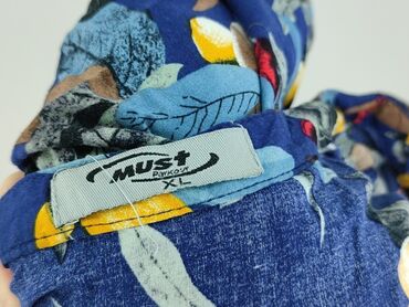 Idealna do stylizacji codziennych i smart-casual; świetnie komponuje się z jeansami lub spódnicą. Marka: MUST (etykieta widoczna na zdjęciach). Rozmiar z metki: XL. Kolory żywe, wzór efektowny na tle granatu.
