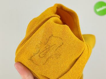 Żółta bluzka damska z krótkim rękawem - Krój: luźny, z lekkim wcięciem w talii i dekoracyjnym wiązaniem z przodu, dół lekko falowany/peplum - Dekolt: łódkowy - Rękawy: krótkie - Materiał: cienka, ...
