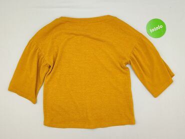 Żółta bluzka damska z lekkiej, ażurowej dzianiny z podszewką. - Krój: luźny, z wydłużonym tyłem (asymetryczny dół – krótszy przód, dłuższy tył). - Rękawy 3/4 z możliwością podpięcia na guzik. - De...