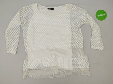Biała bluzka damska z haftowaną koronką - Krój luźny, lekko oversize - Długość rękawa: 3/4 z delikatną gumką przy mankiecie - Dekolt zaokrąglony - Ozdobne, ażurowe wstawki z koronki biegnące od de...Stan: