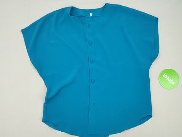 Bluzka/ponczo z lekkiego, półtransparentnego materiału w kolorze turkusowym. Luźny, prosty krój z krótkimi rękawami typu kimono i okrągłym dekoltem. Tkanina delikatnie plisowana, zwiewna. Wzór: - ...