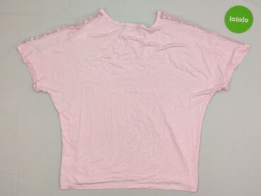 Bluzka damska IO-09, rozmiar S. - Kolor: pastelowy róż - Fason: luźny, z delikatnie zaokrąglonym dołem - Rękawy: krótkie, z transparentnymi wstawkami z koronki na ramionach - Tył: pionowa wstawka ...