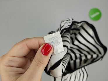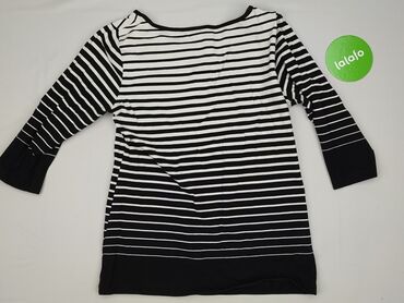 Bluzka damska w paski, rozmiar 44. - Krój: dopasowany, taliowany, z krótkim rękawem - Dekolt: głęboki, kopertowy z szeroką listwą - Tył: gładki czarny, boczne wstawki w paski - Wiązanie: troczek w...