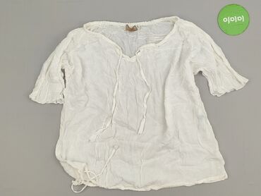 Bluzka damska boho RIVER ISLAND (Sister), rozmiar XS. - Kolor: biały - Materiał: lekka, zwiewna tkanina o kreszowanej (mnie) fakturze - Fason: luźny, swobodny krój - Dekolt: głęboki V z wiązaniem n...