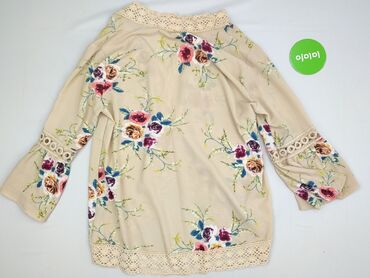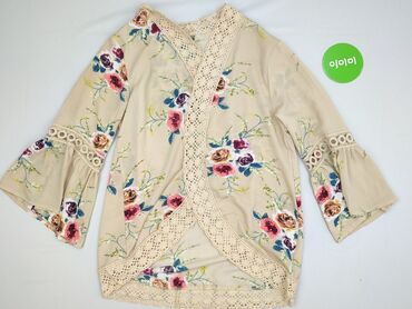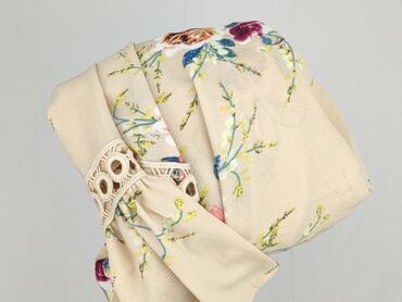 Bluzka damska w stylu boho, w kolorze jasnego beżu/ecru. - Krój: luźny, lekko przedłużany dół, krótkie rękawki motylkowe. - Dekolt: szeroki, z możliwością noszenia na ramionach lub opuszczony; wi...
