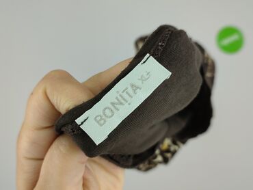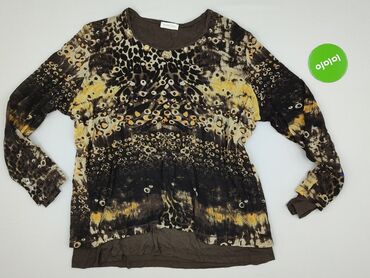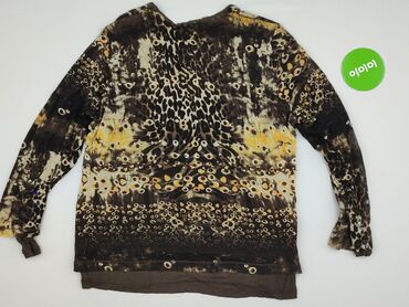 Bluzka damska BONITA, rozmiar XXL. - Fason: luźny, z delikatnym marszczeniem po boku - Dekolt: w kształcie litery V - Rękaw: 3/4 - Przód: wielokolorowy, abstrakcyjny/roślinny nadruk w odcieniach b...