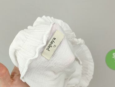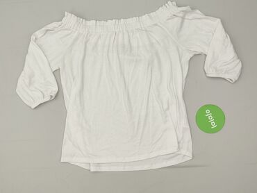 Bluzka hiszpanka Papaya - Kolor: biały - Fason: odkryte ramiona (off-shoulder) z szeroką, marszczoną gumką u góry - Rękawy: 3/4 z delikatną gumką przy mankietach - Materiał: 64% poliester, 34% wis...Stan: