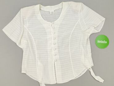 Bluzka damska, kolor: biały, rozmiar: XL. Opis: - Krój z okrągłym dekoltem. - Front zdobiony pionowymi zakładkami (plisami) po obu stronach listwy guzikowej. - Zapięcie z przodu na rząd ozdobnych ...
