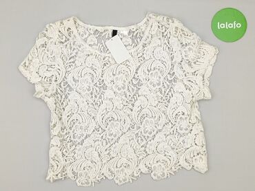 Bluzka damska H&M - Model: krótki rękaw, okrągły dekolt - Kolor: ecru/śmietankowy - Rozmiar z metki: XS (EUR/US/CA/MX), CN 160/80A - Fason: dopasowany - Detale: koronkowa góra i rękawy z motywem k...