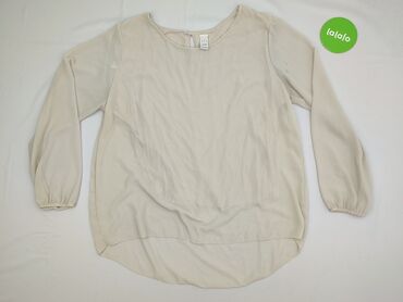Bluzka damska, beżowa, z długim rękawem. - Krój: luźny, prosty, z opuszczoną linią ramion; rękawy zakończone lekkim ściągnięciem przy mankiecie. - Dekolt: okrągły. - Tkanina: cienka, zwiewna, z de...Stan: