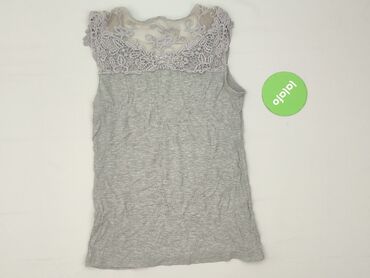 Szary top bez rękawów Ideal - Krój: dopasowany, bez rękawów - Dekolt: w kształcie litery V z koronkową wstawką i krótką listwą guzikową (4 guziki) - Ozdoby: bogato zdobiona, ażurowa koronka z moty...