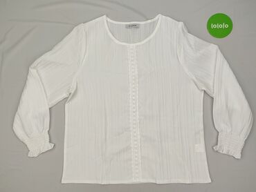 Biała bluzka damska z haftowaną koronką - Krój luźny, lekko oversize - Długość rękawa: 3/4 z delikatną gumką przy mankiecie - Dekolt zaokrąglony - Ozdobne, ażurowe wstawki z koronki biegnące od de...Stan: