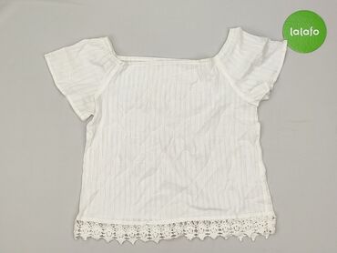 Biała bluzka hiszpanka z krótkim rękawem i wiązaniem - Krój: hiszpanka – szeroki dekolt opuszczany na ramiona, falbana wokół dekoltu - Rękaw: krótki, lekko bufiany - Dół: przedłużony z troczkiem d...